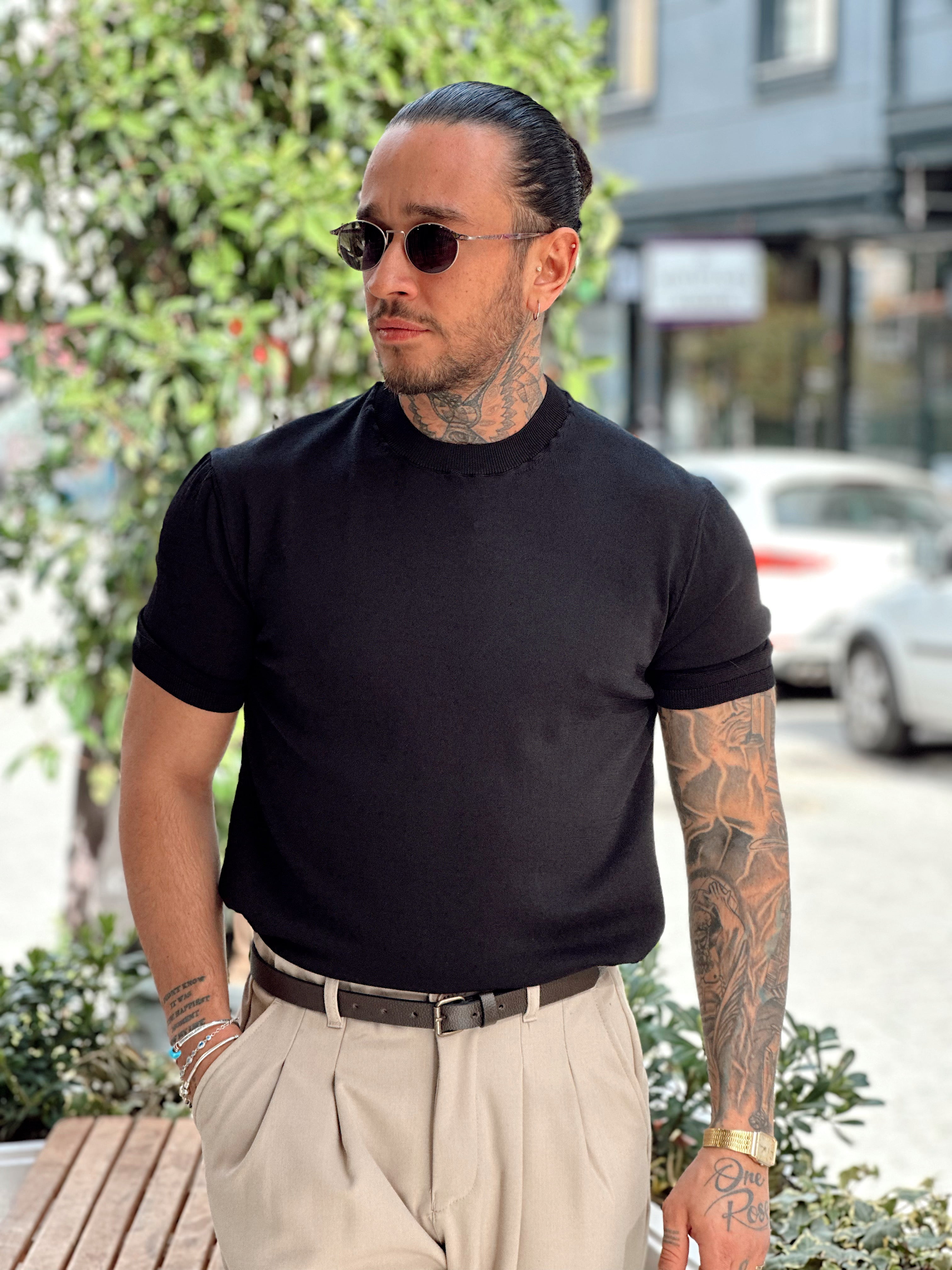 MT2800 - Basic Yarım Balıkçı Triko T-Shirt siyah